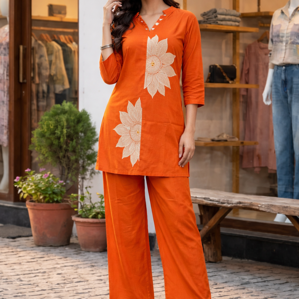 Rust Orange Cotton Floral Co-Ord Set