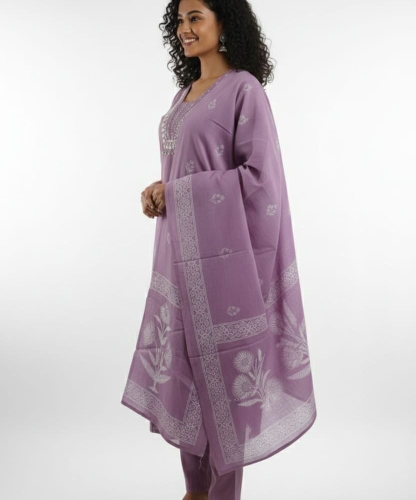 Lavender Bloom Cotton Kurta Pant Set